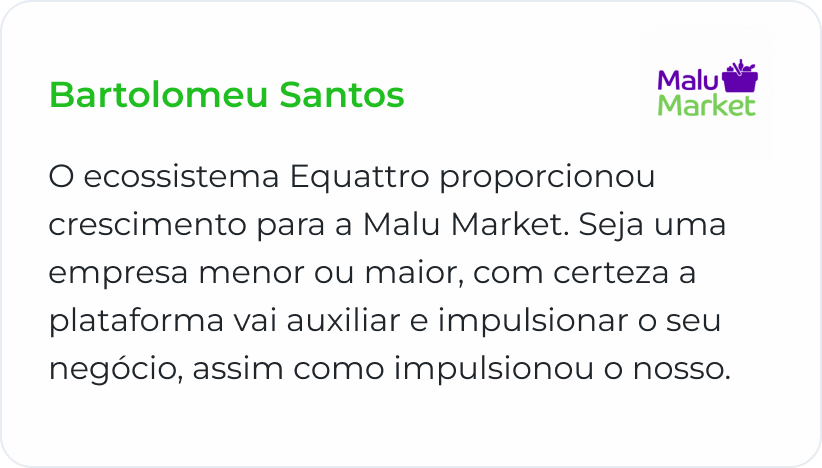 O Equattro é um ecossistema nativamente integrado, ou seja, todos os nossos produtos foram feitos para trabalhar juntos. Isso elimina a dor de cabeça de sistemas desconectados e oferece uma fonte única de verdade para a gestão completa do seu negócio.